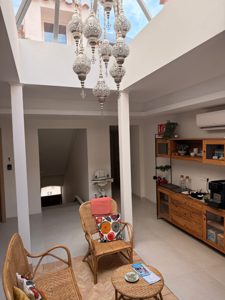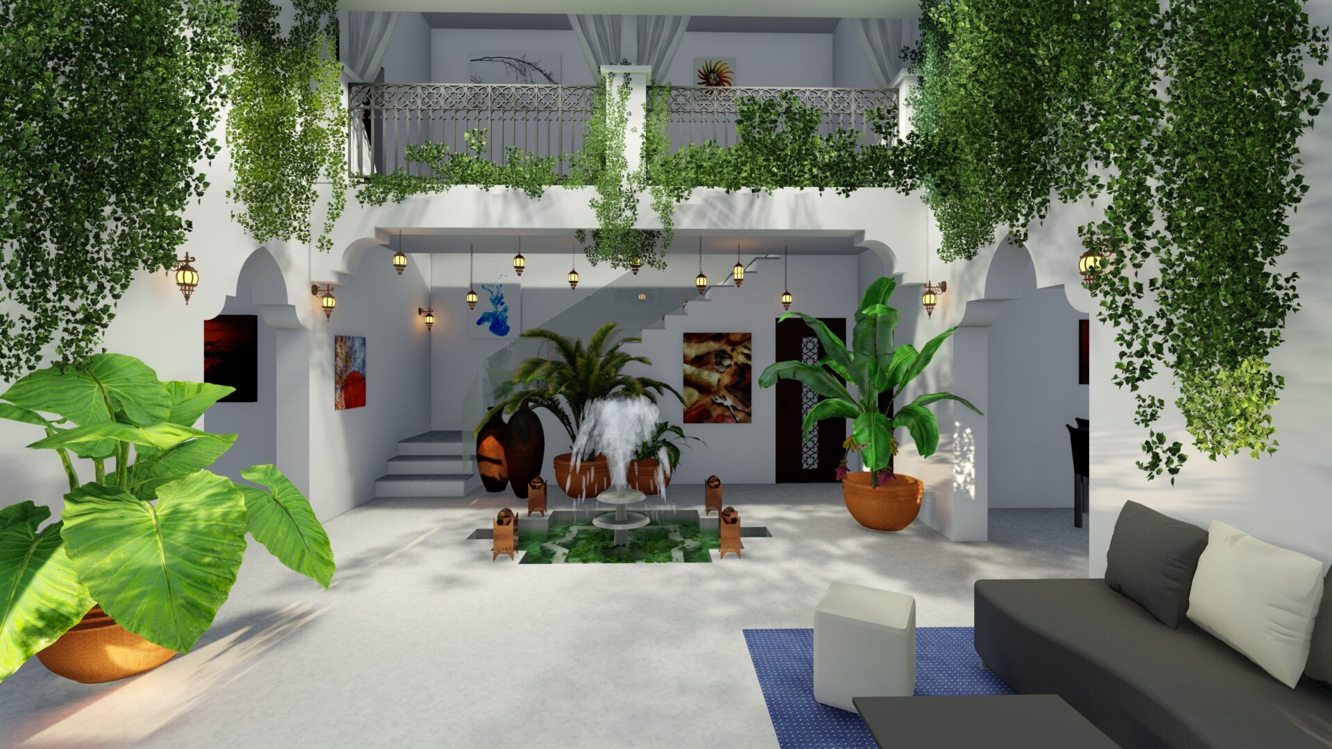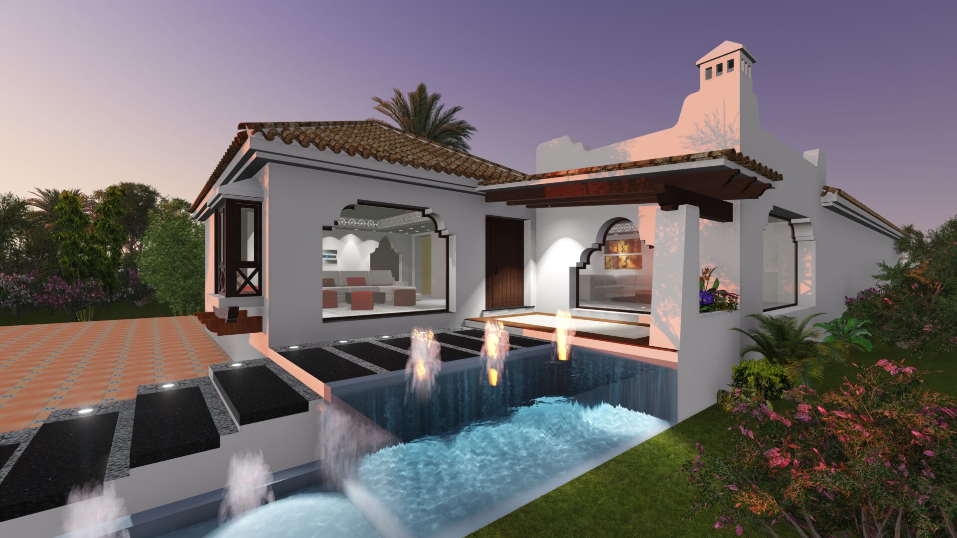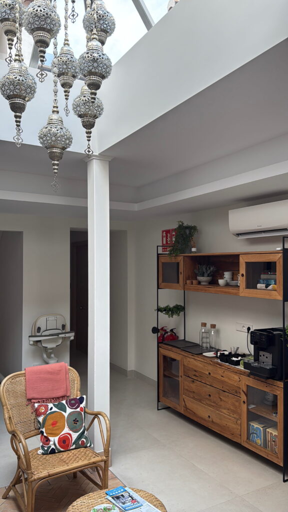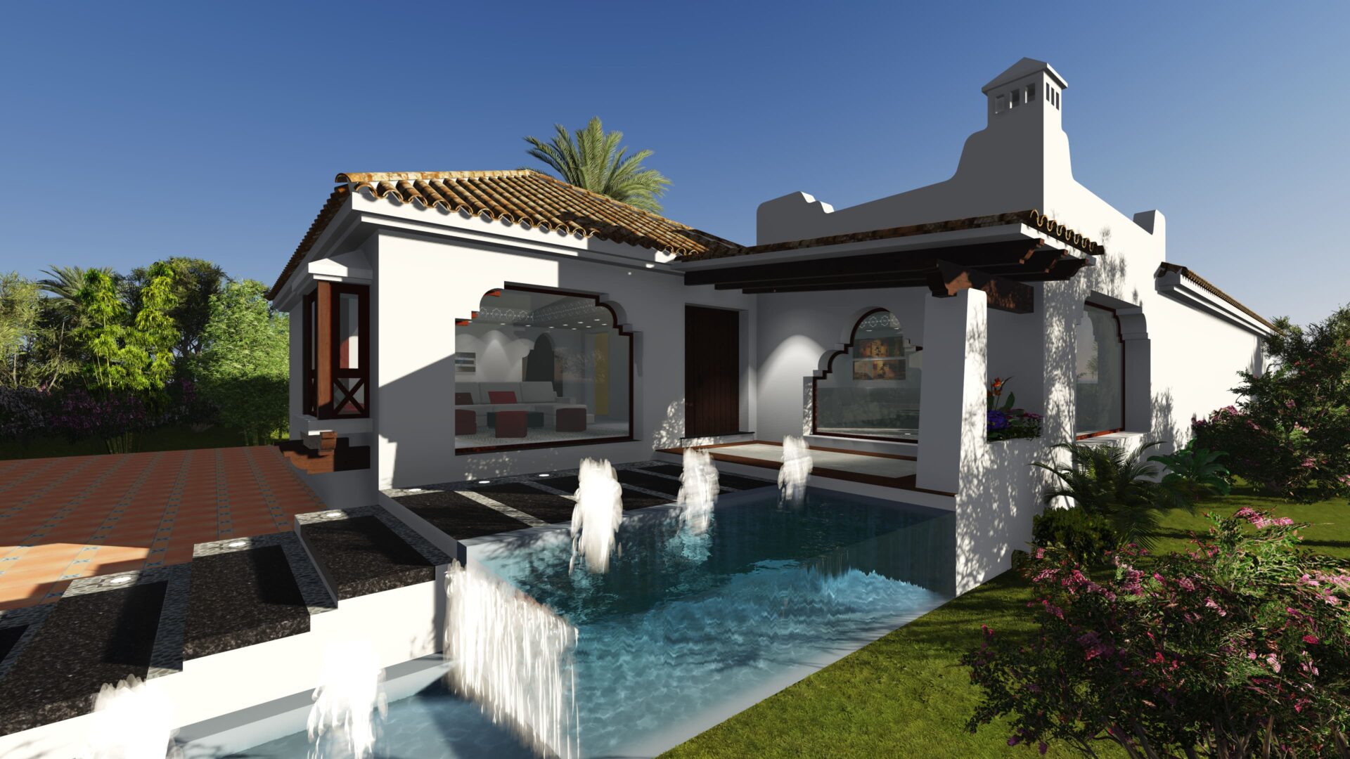 Reinterpretación contemporánea del patio andalusí. El diseño utiliza la luz, la vegetación y el agua para crear un refugio sereno y vital